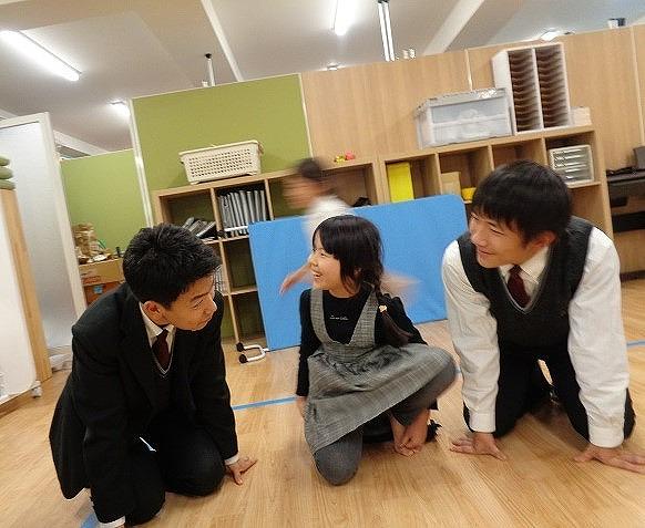 はじめは、制服を着たお姉さん・お兄さんに緊張していた子どもたちでしたが、レクリエーションを通して一緒に遊びながら、距離を縮めています。すでに、お互いのお名前を覚えるまで仲良くなっている子も!