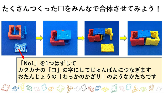 コの字を作る競争をしたあと、そのコの字をつないで合体させる、チェーンテクニックに挑戦!
