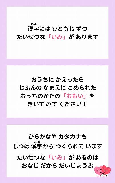 最後に、自分のなまえにこめられた意味や思いについて、おうちの人に聞いてみようというお話をいただきました。