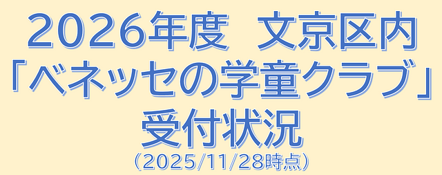 文京区内の「ベネッセの学童クラブ」の2026年度新規入会の受付状況をお知らせします。